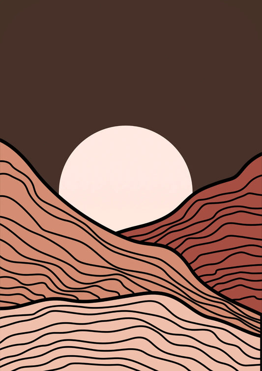 Minimalistyczny Zachód Słońca nad Wzgórzami Plakat