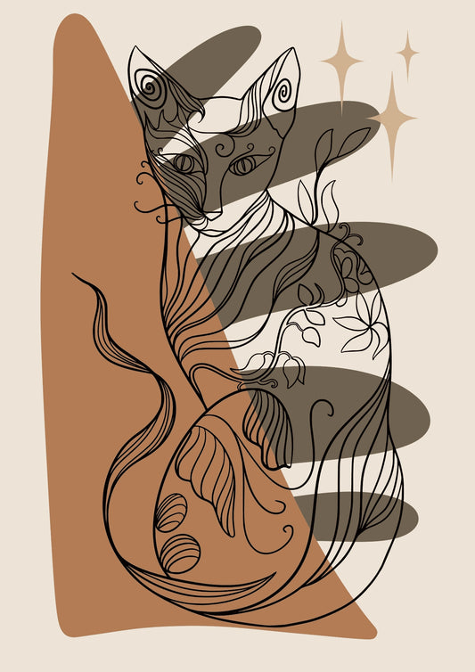 Cena regularna Od 49,99 złCena regularnaCena jednostkowa / naCena promocyjna Od 49,99 złAbstrakcyjny Kot z Geometrycznymi Wzorami na Pomarańczowym Tle Plakat