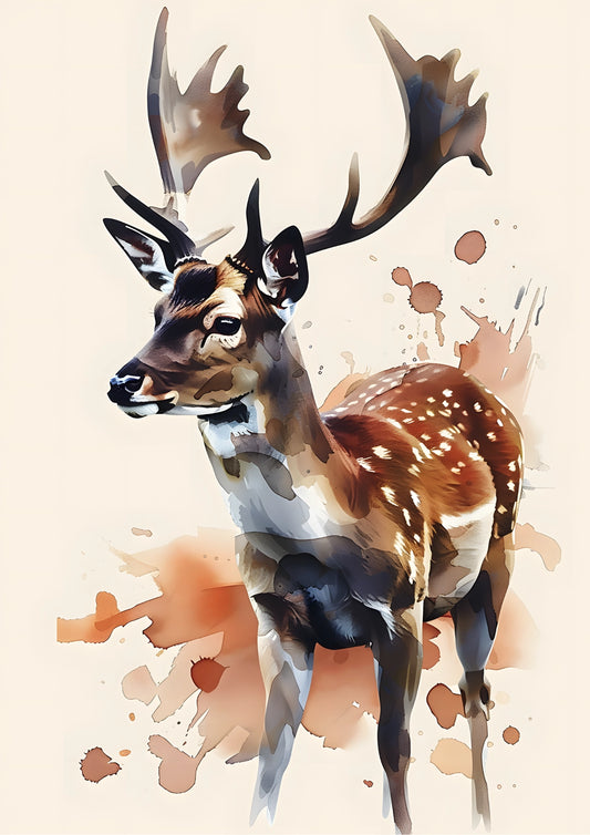 Wspaniały Jeleń w Akwarelowej Naturze Plakat