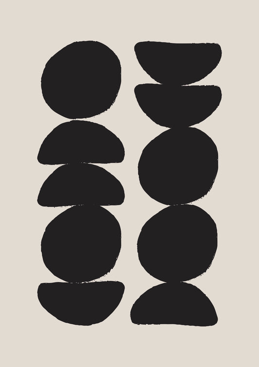 Geometryczne Czarne Kształty na Beżowym Tle Plakat