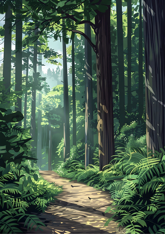 Leśna Ścieżka Oświetlona Słońcem Plakat