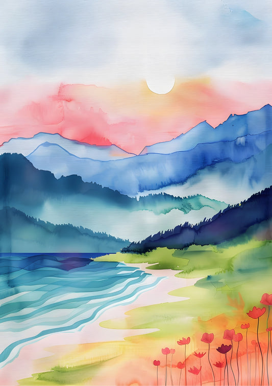Górski Poranek z Widokiem na Plażę Plakat