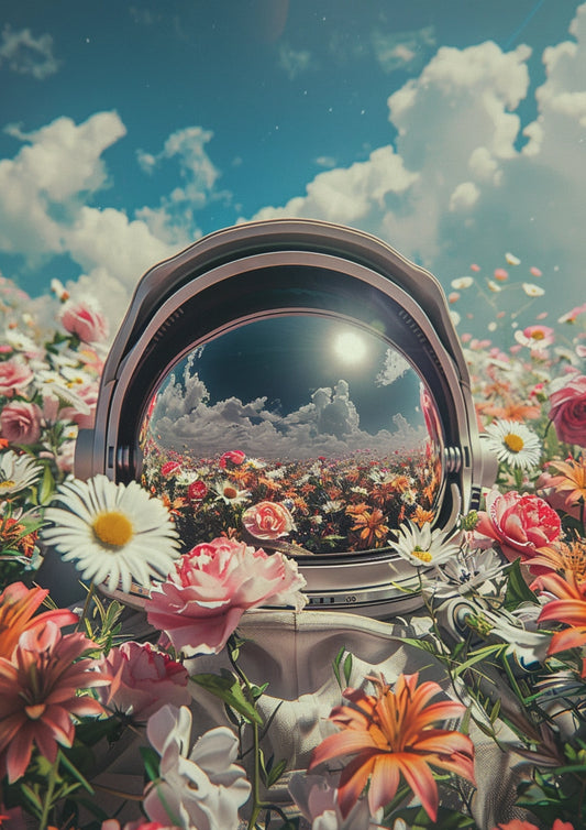 Kosmiczny Astronauta w Kwiatach Plakat