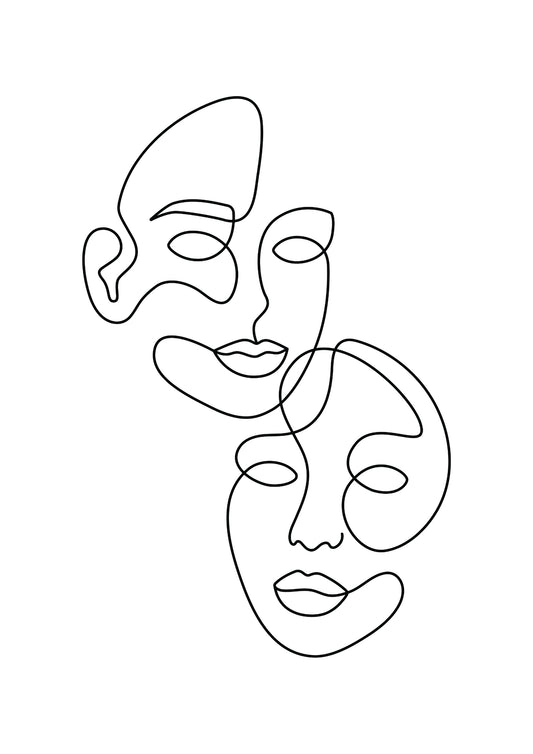 Twarze Jedną Linią Abstrakcyjny Plakat