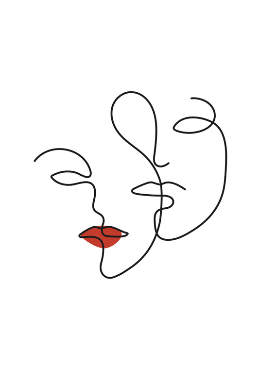 Minimalistyczny Jedna Linia - Twarz z Czerwonymi Ustami Plakat