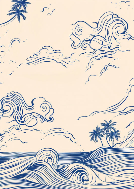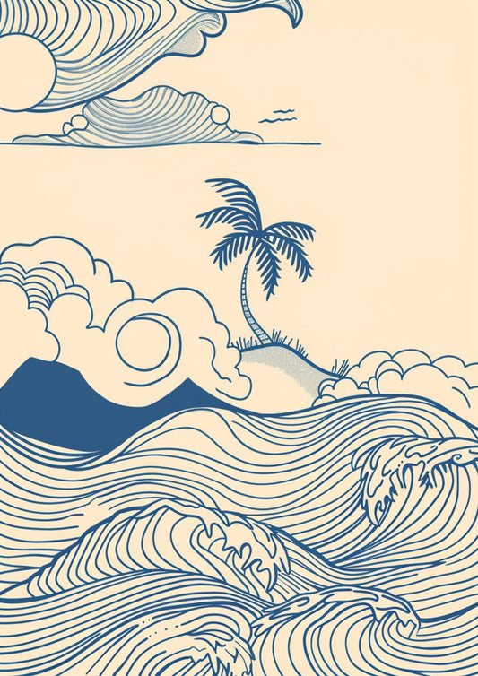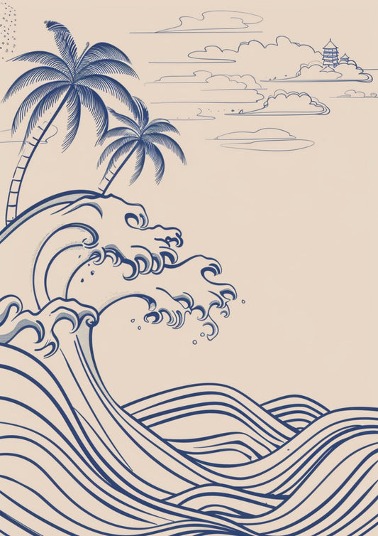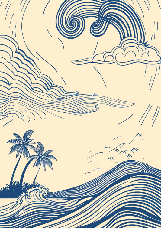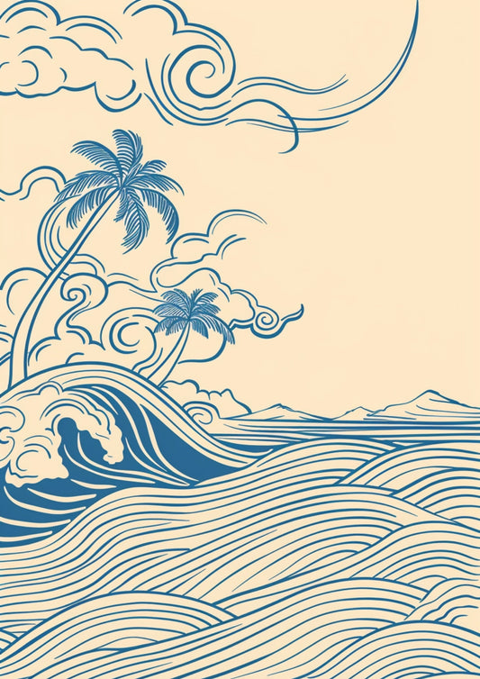 Tropikalne Fale Pod Palmą Plakat