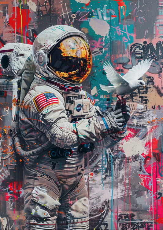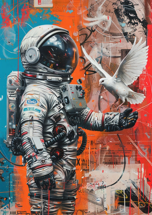 Kosmiczny Podróżnik z Gołębiem Plakat