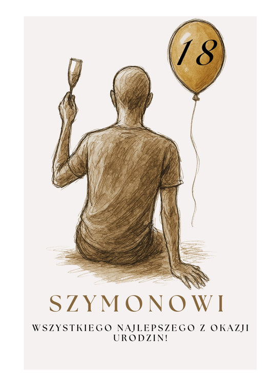 Personalizowany Plakat Urodzinowy z Mężczyzną i Balonem – Wyjątkowy Prezent na Każdy Wiek