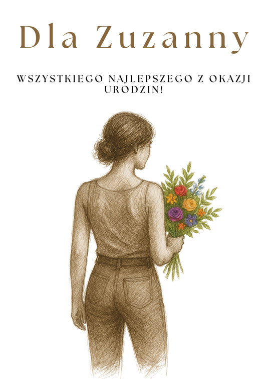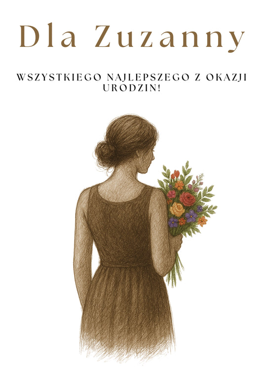 Personalizowany Plakat Urodzinowy z Kobiecą Sylwetką i Bukietem – Elegancki Prezent Dla Niej