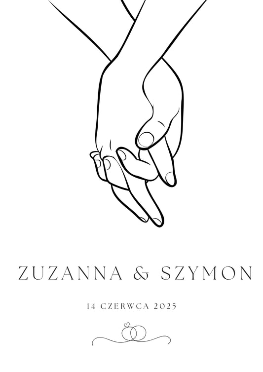 Personalizowany Plakat z Motywem Trzymających się Dłoni – Pamiątka Ślubu, Rocznicy lub Zaręczyn