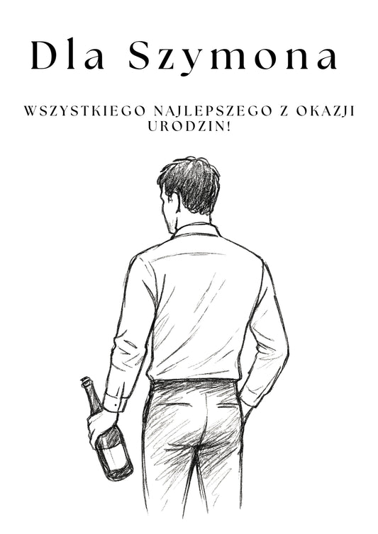 Personalizowany Plakat Urodzinowy z Sylwetką Mężczyzny i Butelką – Stylowy Prezent z Charakterem