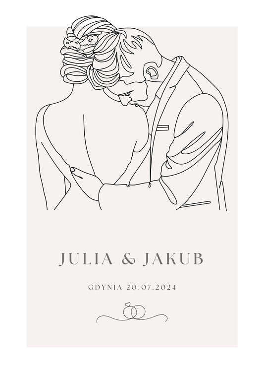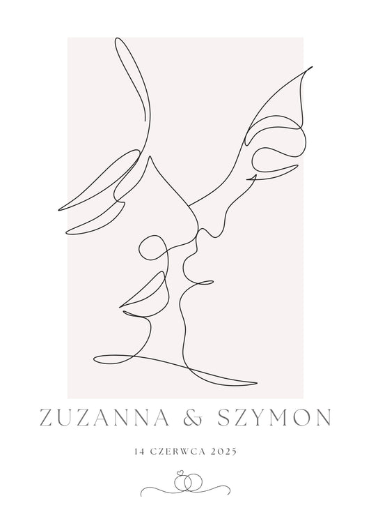 Personalizowany Plakat z Parą w Linii Ciągłej – Pamiątka Ślubu, Zaręczyn lub Rocznicy