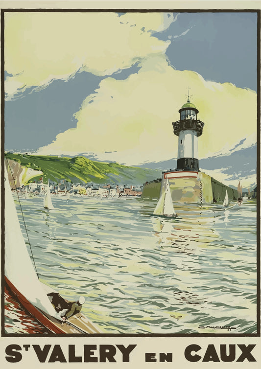 Latarnia Morska i Żaglówki St. Valery en Caux Plakat