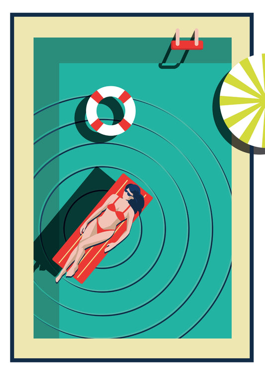 Cena regularna Od 49,99 złCena regularnaCena jednostkowa / naCena promocyjna Od 49,99 złKobieta w Basenie Relaksująca Się na Leżaku Plakat