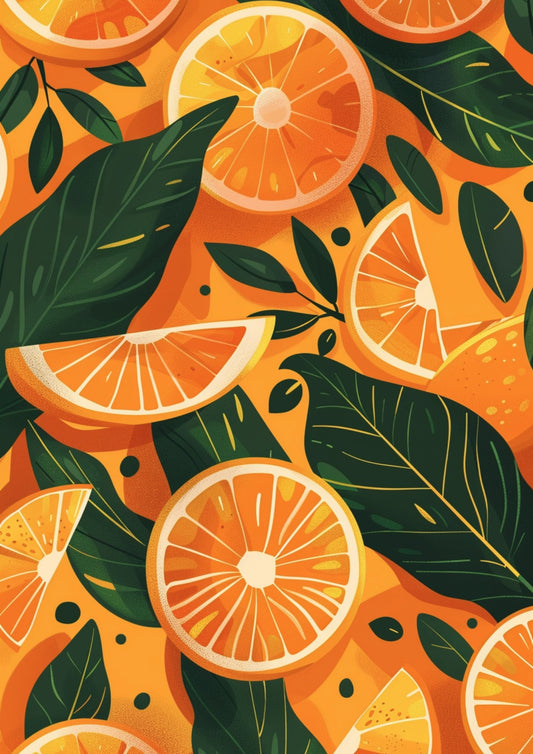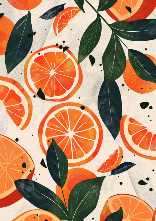 Soczysta Pomarańcza z Liśćmi Plakat