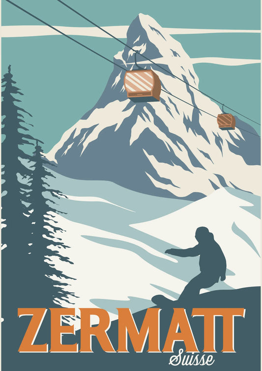Zermatt Suisse Snowboard Plakat
