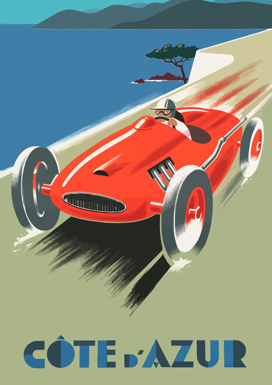 Côte d'Azur Wyścigowy Czerwony Samochód Plakat