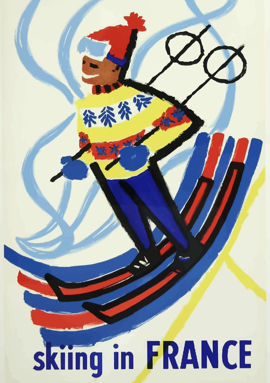 Skiing in France Kolorowy Narciarz Plakat