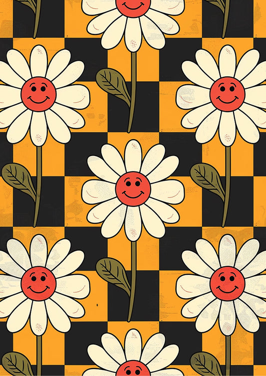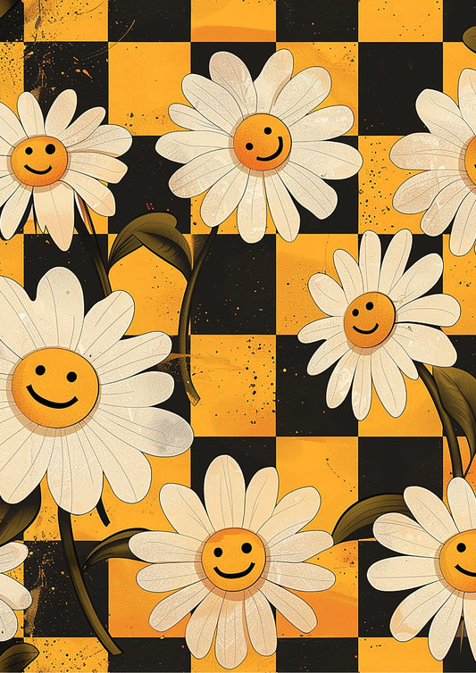 Uśmiechnięte Stokrotki na Szachownicy Plakat