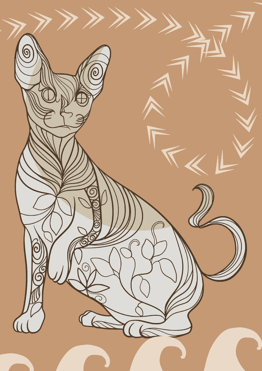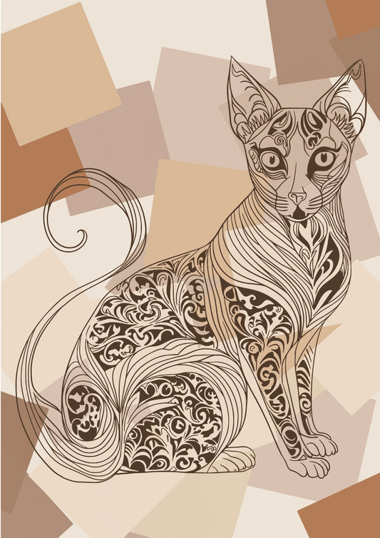 Stylizowany Kot Artystyczny na Pomarańczowym Tle Plakat