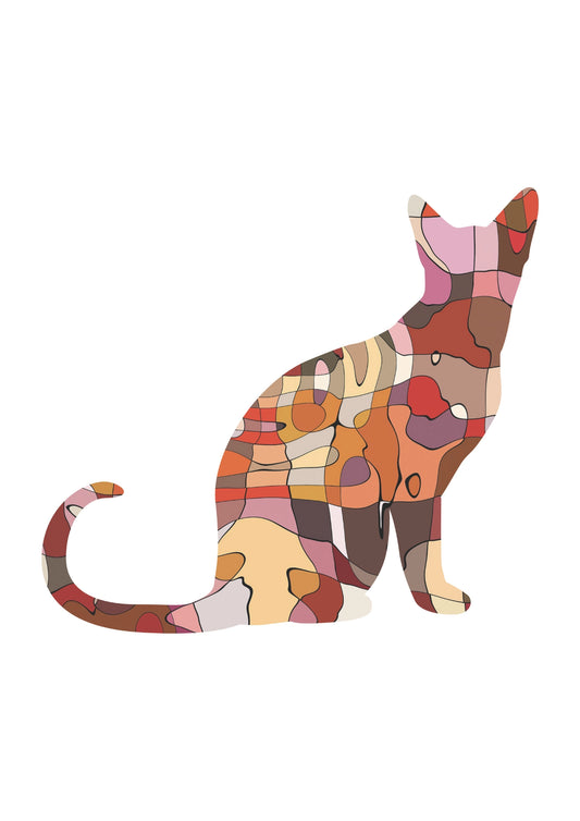 Abstrakcyjny Kot z Geometrycznymi Wzorami na Pomarańczowym Tle Plakat