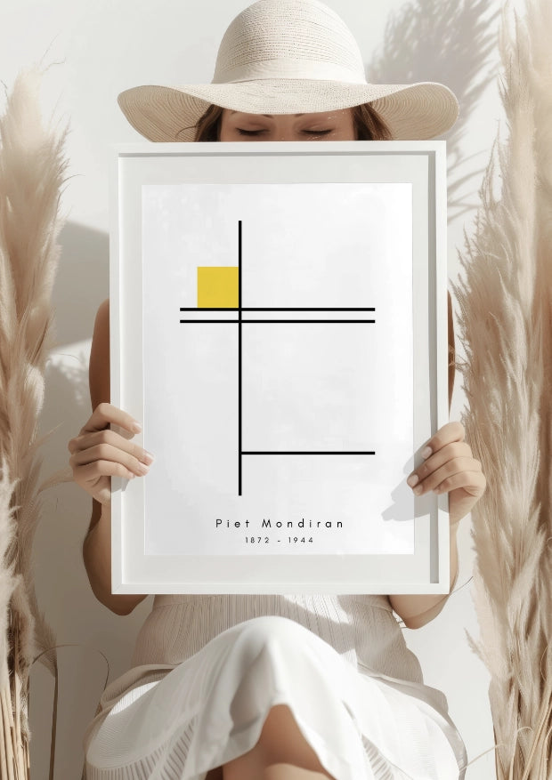Ten plakat to hołd dla twórczości Pierta Mondriana, przedstawiający klasyczną geometrię z wyrazistym żółtym akcentem, który dodaje całości życia. Subtelne linie tworzą harmonijną kompozycję, która doskonale uzupełni nowoczesne wnętrza.Minimalizm z mocnym akcentem