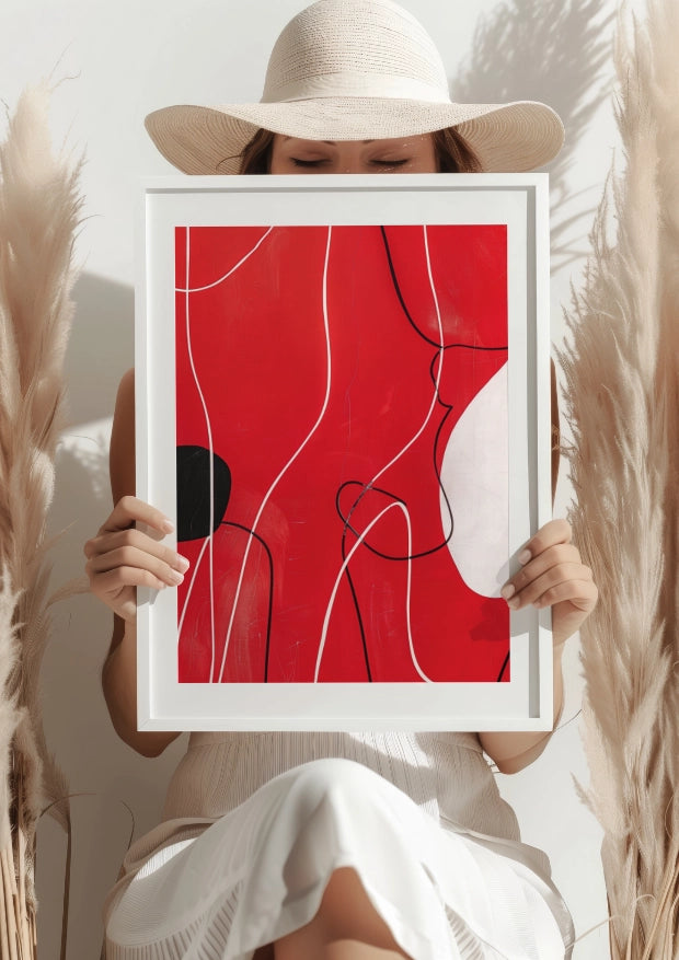 Plakat ten to nie tylko kolor i forma, ale także inspiracja do codziennego odkrywania nowych perspektyw. Czerwone tło pulsuje życiem, podczas gdy delikatne linie prowadzą cię przez niewidzialne ścieżki artystycznej wyobraźni, otwierając drzwi do świata pełnego nieograniczonych możliwości.Przynieś do Domu Emocje i Elegancję