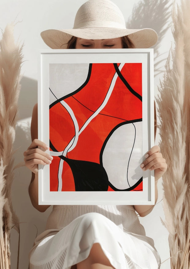 Ten plakat przyciąga uwagę swoją nowoczesną kompozycją, gdzie czerwienie i czernie spotykają się w odważnym dialogu z bielą. Każda linia i kształt opowiadają historię pełną energii i ruchu, która wykracza poza ramy tradycyjnej sztuki.Ożyw Swój Świat: Emocjonalna Głębokość w Każdym Domu