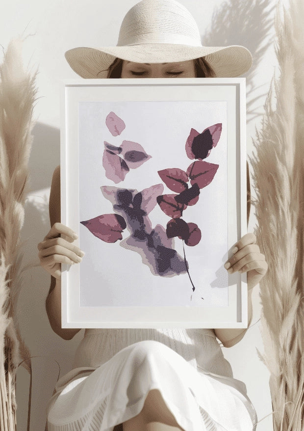 Ten plakat ukazuje subtelną kompozycję liści w odcieniach różu, tworząc intrygujący i nowoczesny obraz natury. Dzięki swojemu minimalistycznemu stylowi doskonale wpisuje się w nowoczesne trendy dekoracji wnętrz.Nowoczesna sztuka dla Twojej przestrzeni