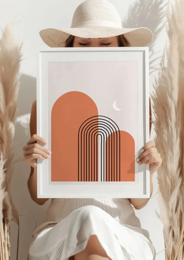 Plakat „Abstrakcyjny Pomarańczowy Łuk” to esencja nowoczesnego minimalizmu, gdzie proste linie i subtelne kształty łączą się, tworząc harmonijną kompozycję. Pomarańczowe łuki przeplatają się z czarnymi liniami, tworząc elegancki i wyważony wzór, który doskonale sprawdzi się w każdym wnętrzu, dodając mu ciepła i nowoczesności.