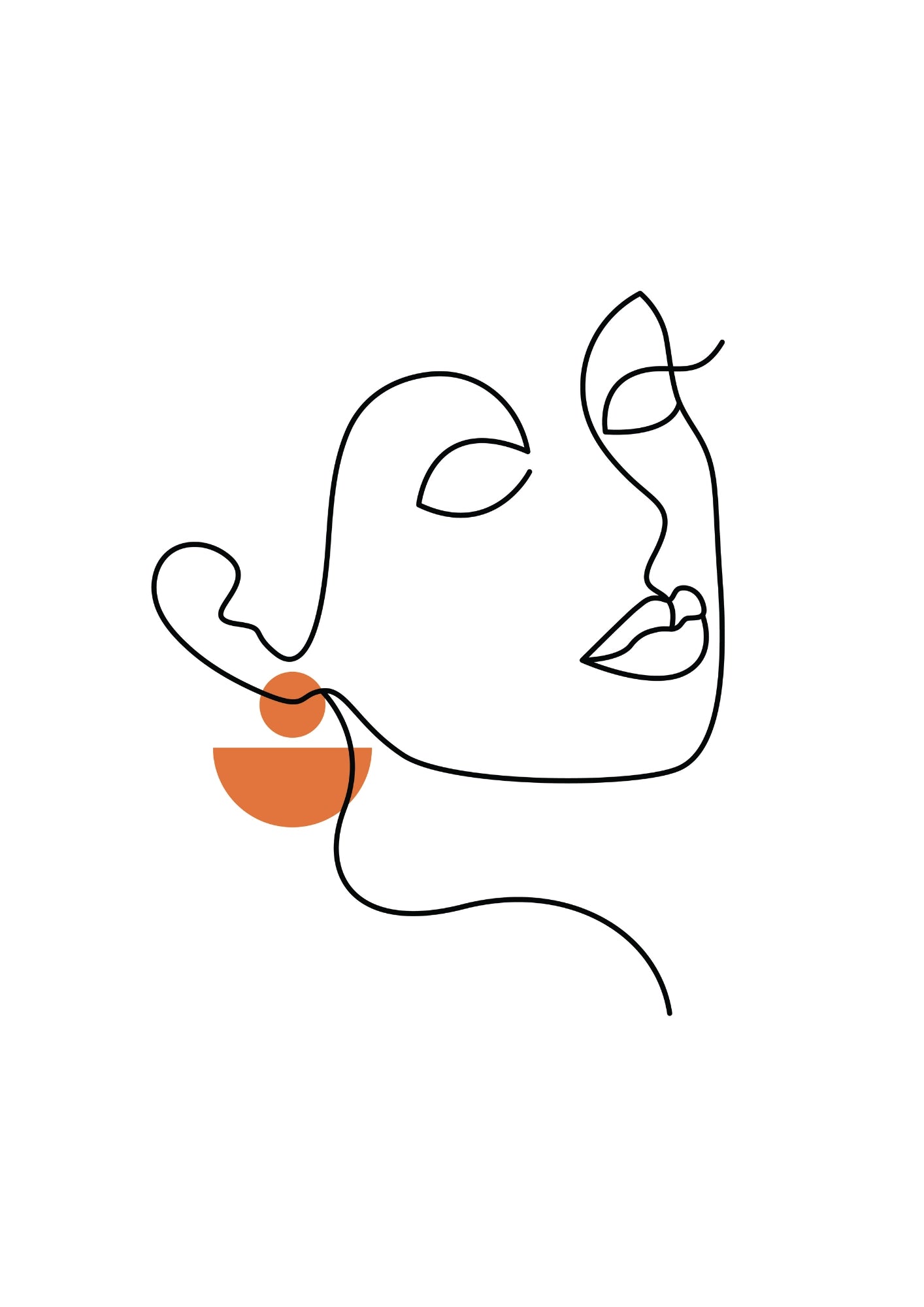 Ten minimalistyczny plakat to subtelna gra jedną linią, która delikatnie obrysowuje kształt kobiecej twarzy. Zgrabne, płynne linie tworzą sylwetkę, która emanuje spokojem i wdziękiem. Dodany pomarańczowy akcent w kształcie półkola wprowadza do kompozycji odrobinę nowoczesności, nadając jej unikalny charakter.Sztuka Minimalizmu