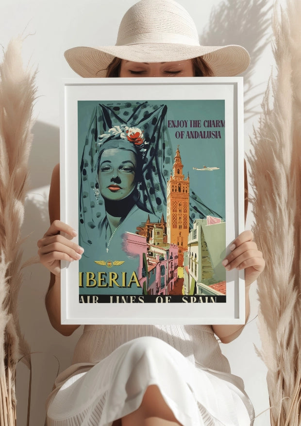 Plakat "Andaluzja" przenosi nas w świat hiszpańskiego folkloru i architektury. Zmysłowa kobieta w tradycyjnym stroju flamenco oraz majestatyczna wieża Giralda w Sewilli tworzą harmonijną całość, która przypomina o bogatej kulturze południowej Hiszpanii. Plakat ten zachęca do odkrywania nie tylko pięknych widoków, ale i pasji, która tkwi w sercu Andaluzji – regionu słynącego z flamenco, byków i fascynującej architektury.Barwna Historia i Kultura na Jednym Plakacie