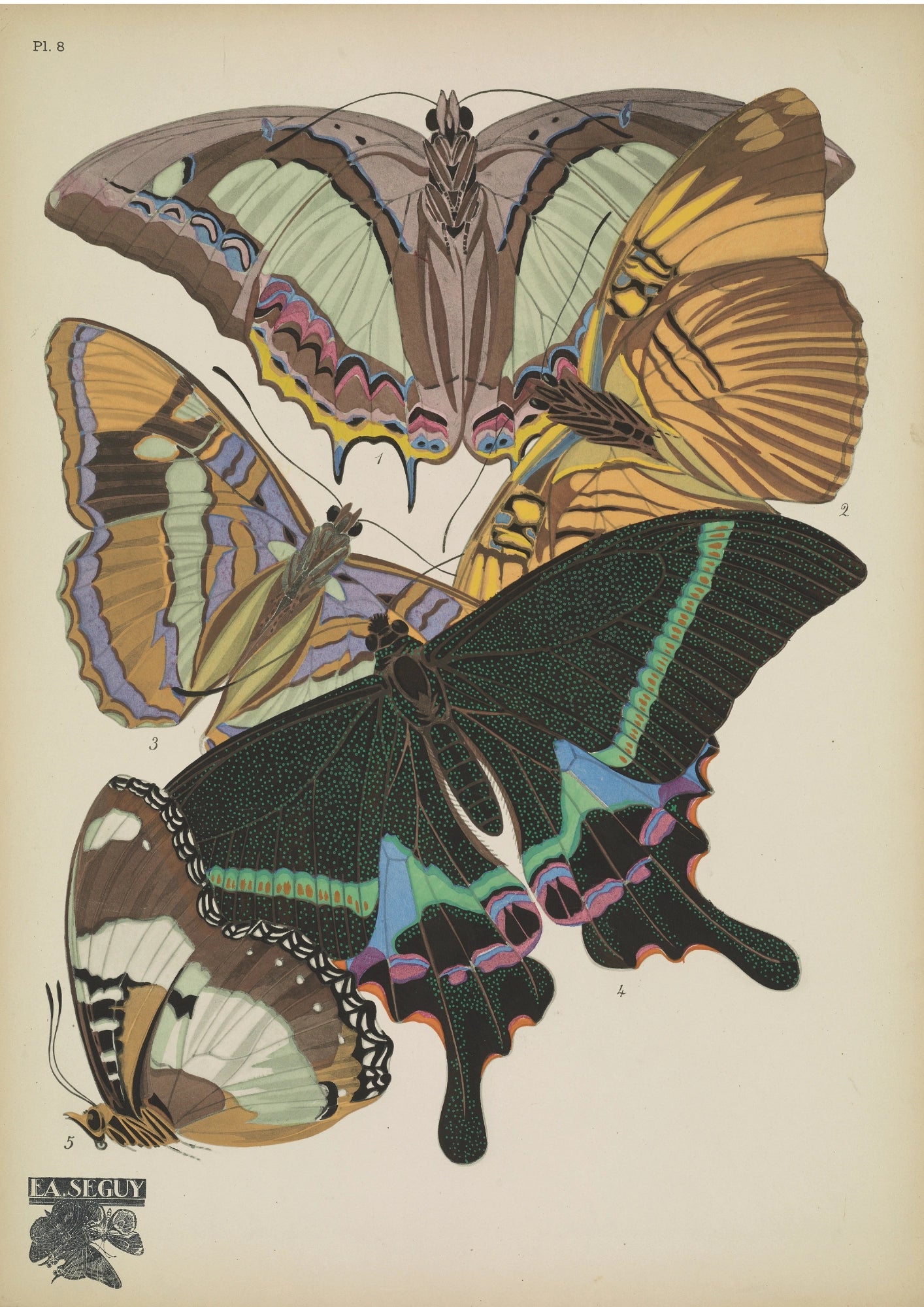 Ten plakat "Artystyczne Motyle Kolekcja Seguy" ukazuje niezwykłe bogactwo barw i wzorów, które zaskoczą każdego miłośnika sztuki i natury. Każdy motyl to prawdziwe dzieło sztuki – od delikatnych, pastelowych odcieni fioletu po intensywne kontrasty zieleni i czerni.Kunszt E.A. Seguy