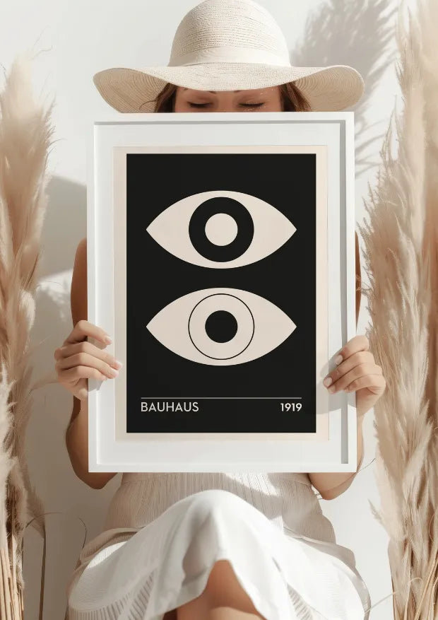 Ten plakat to symboliczny hołd dla Bauhausu, przedstawiający oko jako metaforę nowego spojrzenia na sztukę i design. Czysta, minimalistyczna forma oddaje esencję ruchu, który redefiniował granice estetyki i funkcjonalności. Kontrast czerni i neutralnego tła podkreśla prostotę, a zarazem głębię przekazu.