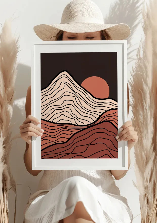Nie przegap okazji, aby wzbogacić swoje wnętrze o ten wyjątkowy plakat. Zamów już dziś i ciesz się harmonią, jaką wnosi do Twojego domu ciepły abstrakcyjny krajobraz górski.