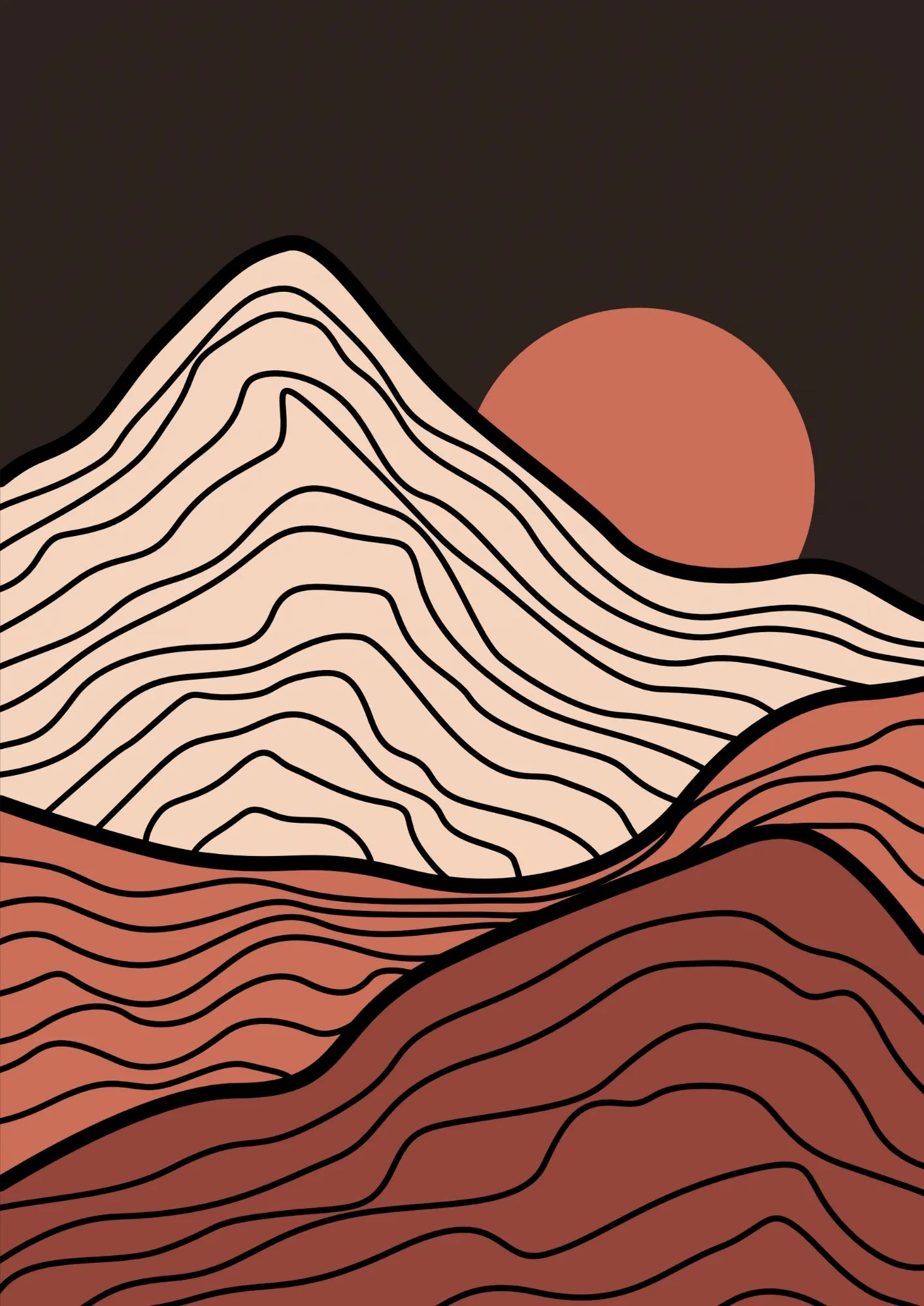 Plakat „Ciepły Abstrakcyjny Krajobraz Górski” przenosi Cię w serce spokojnych gór, gdzie naturalne kształty i delikatne linie tworzą harmonijną całość. Ta grafika to idealne połączenie ciepłych, ziemistych tonów z minimalistycznym stylem, który wnosi do wnętrza subtelność i spokój.