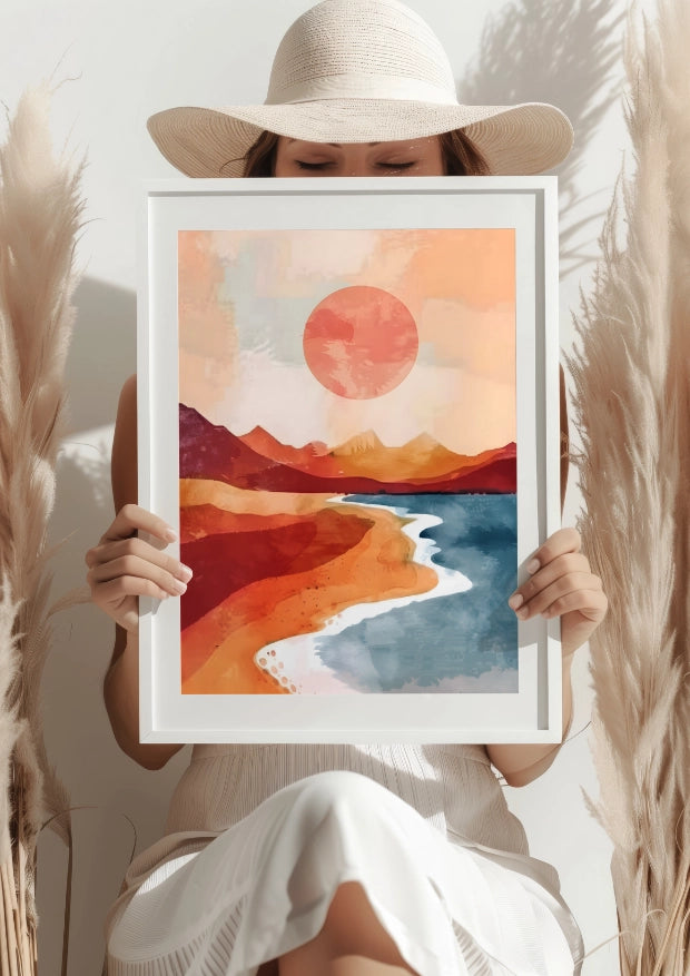 Jeśli marzysz o chwilach relaksu w otoczeniu natury, ten plakat przeniesie Cię nad spokojne wybrzeże, gdzie słońce powoli chowa się za horyzontem. To idealna ozdoba do salonu, sypialni lub biura, która przypomni Ci o pięknie świata.Dodaj ciepła i energii do swojego domu