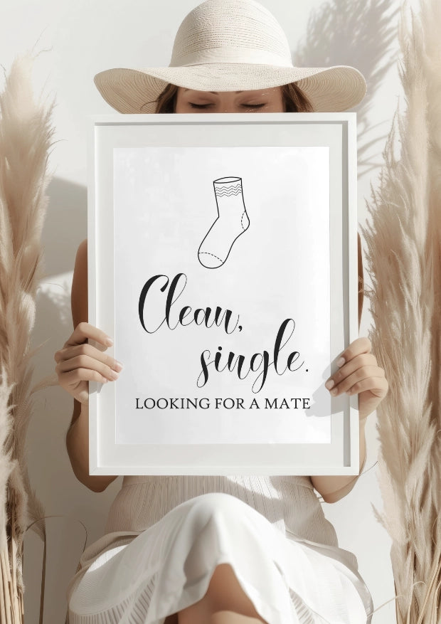 Zastanawiałeś się kiedyś nad losem samotnej skarpetki, która ugrzęzła w koszu na bieliznę? Plakat "Czysta Skarpeta Szuka Towarzysza" przenosi ten codzienny dramat na ścianę Twojego domu, zamieniając go w humorystyczne dzieło sztuki. Z jego unikalnym designem i przesłaniem, ten plakat staje się nie tylko dekoracją, ale także początkiem rozmowy i śmiechu.Zdobądź Serca Znajomych
