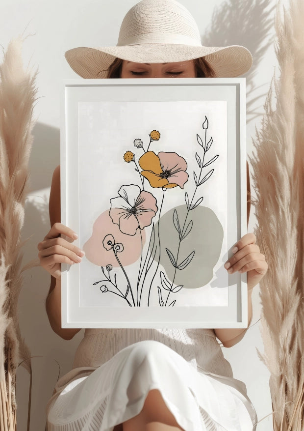 Plakat "Delikatne Polne Kwiaty" przenosi nas w świat naturalnej elegancji i spokojnej harmonii. Subtelne linie przedstawiające kwiaty w ciepłych odcieniach pastelowego różu i beżu sprawią, że Twoje wnętrze nabierze przytulnego, naturalnego charakteru.Kwiaty, które Inspirują Spokój i Harmonię