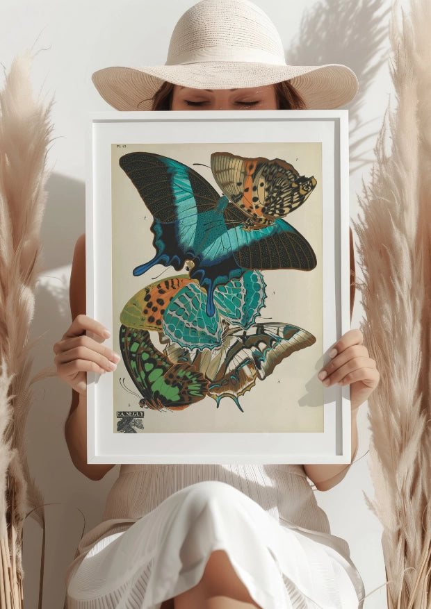 Plakat "Egzotyczne Motyle Seguy" to idealny przykład sztuki inspirowanej naturą, który wnosi bogactwo kolorów i form do każdego wnętrza. Intensywne błękity, zielenie i odcienie pomarańczy tworzą wrażenie ruchu, przyciągając wzrok i wprowadzając harmonię.Szczegóły w doskonałej precyzji