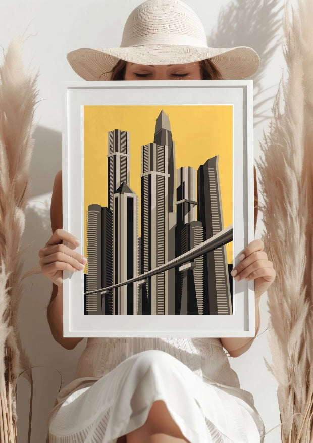 Stonowane barwy i prosta kompozycja sprawiają, że plakat ten doskonale wpasuje się w minimalistyczne, nowoczesne wnętrza. Detale wieżowców oraz widoczna struktura budynków nadają tej pracy subtelnego, ale niezwykle wyrazistego charakteru, który przyciąga wzrok.