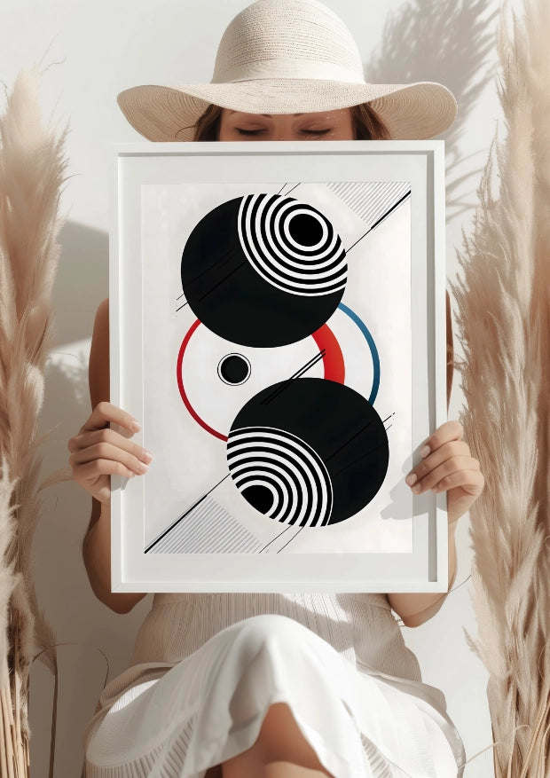 "Geometryczne Kontrasty Sfer" przyciągają uwagę swoim mistrzowskim połączeniem powtarzających się wzorów i śmiałych kolorów. Doskonały balans czerni, czerwieni i niebieskiego sprawia, że każda przestrzeń nabiera zupełnie nowego wyrazu. Wysokiej jakości druk i wyraziste linie zapewniają, że plakat staje się centralnym punktem każdego wnętrza, wpływając na jego dynamikę i atmosferę.Zamień Swoje Wnętrze w Przestrzeń Pełną Energii