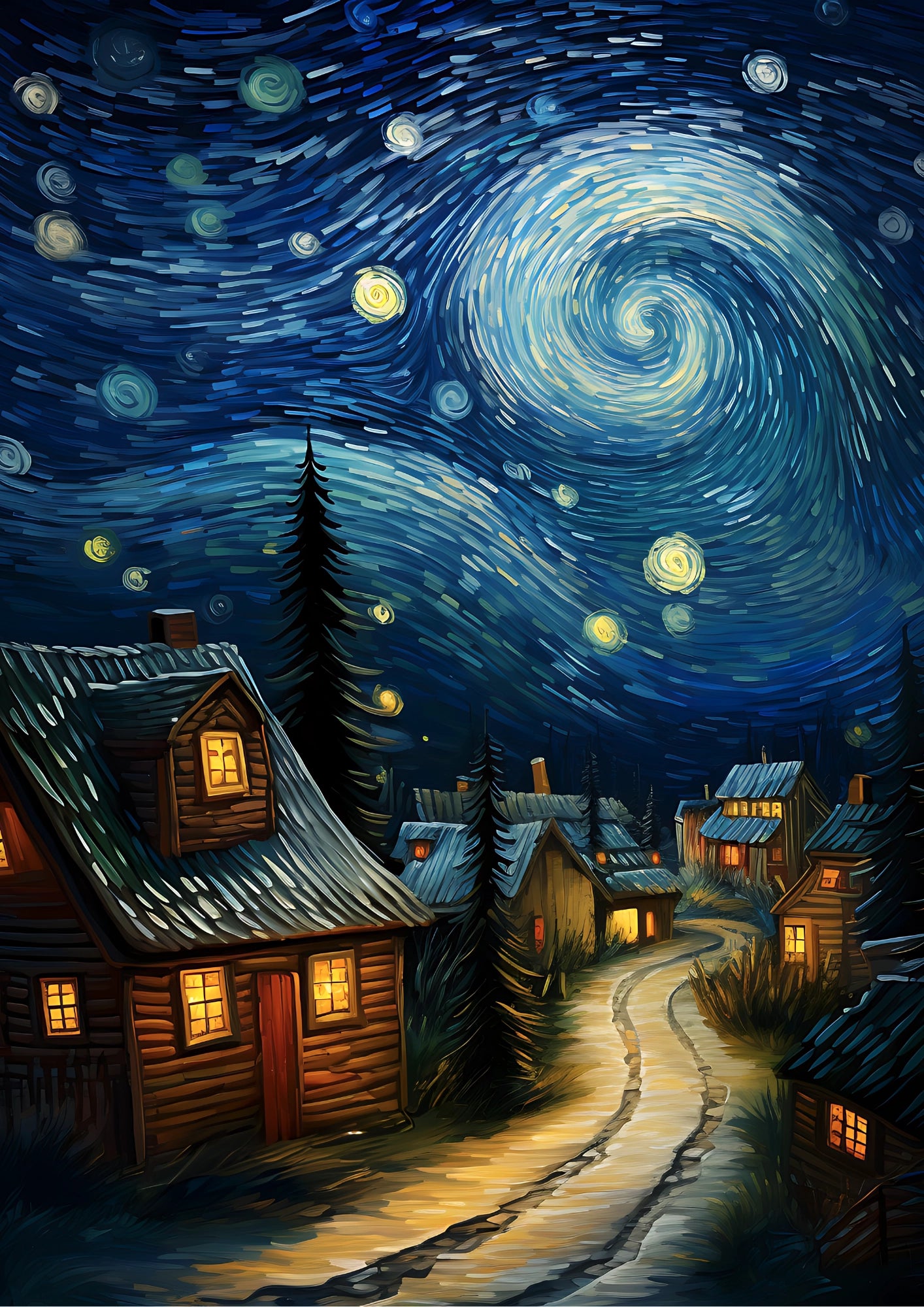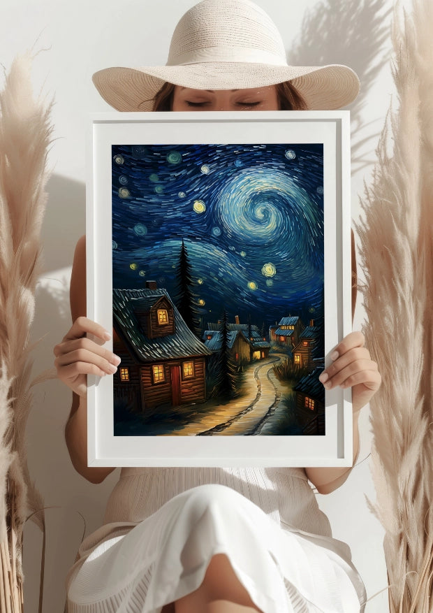 Każdy element plakatu, od wirujących gwiazd po wiejskie chaty, został starannie odwzorowany, oddając hołd klasycznym pejzażom nocnym. Wysoka jakość druku gwarantuje, że kolory są żywe, a szczegóły wyraźne, co pozwala w pełni cieszyć się tym artystycznym dziełem.Przenieś Spokój i Urok do Swojego Wnętrza