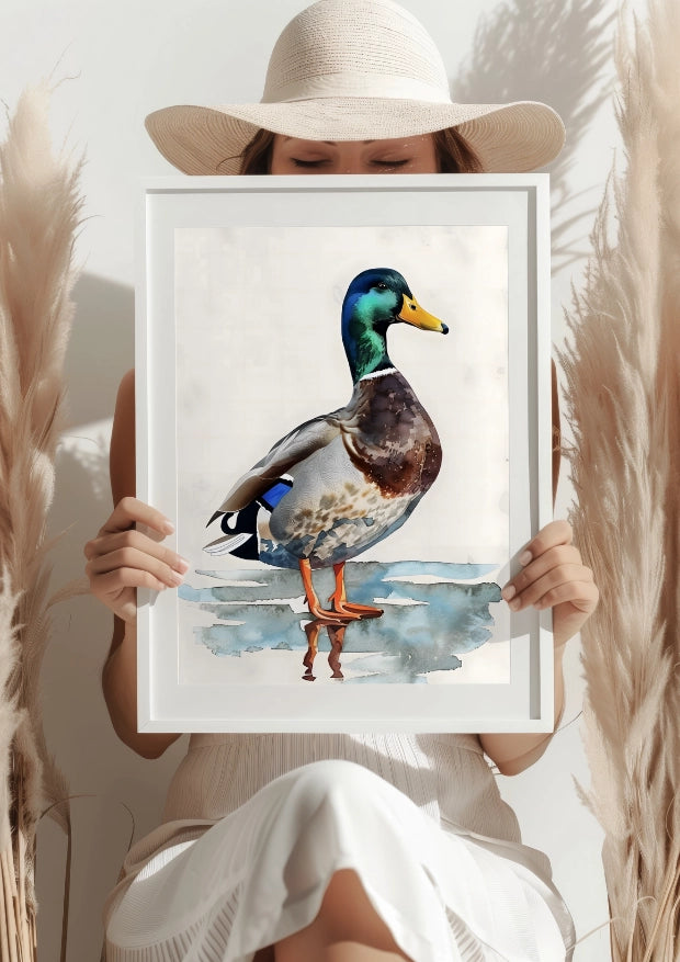 Ten wyjątkowy plakat przedstawia kaczkę krzyżówkę, majestatycznie unoszącą się na wodzie. Akwarelowe detale idealnie oddają kontrast między jej błyszczącym, kolorowym upierzeniem a spokojną taflą wody. Subtelność barw i precyzyjne odwzorowanie natury sprawiają, że każda ściana, na której zawiśnie ten plakat, nabiera nowego charakteru.Symbol Harmonii i Spokoju