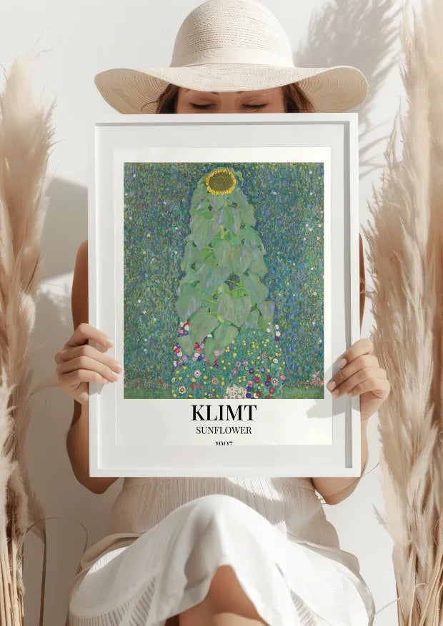 Plakat „Klimt Słonecznik 1907” to wyjątkowe dzieło, które ukazuje fascynację Gustava Klimta naturą i jej niesamowitą różnorodnością. Ten obraz przedstawia samotny, majestatyczny słonecznik wyrastający z bujnej zieleni i otoczony wielobarwnymi kwiatami. Klimt, znany głównie z portretów, tutaj pokazuje swoje mistrzostwo w uchwyceniu esencji natury poprzez delikatne pociągnięcia pędzla i harmonijną kompozycję.