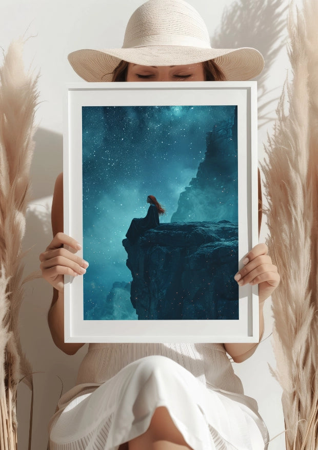 Zanurz się w świecie nieograniczonej wyobraźni z naszym plakatem "Kobieta na Krawędzi". Ten niezwykły obraz przedstawia tajemniczą postać stojącą na krańcu świata, otuloną blaskiem gwiazd. To nie tylko dekoracja ścienna, lecz także portal do snów i refleksji, który przyciąga wzrok i rozbudza ciekawość każdej odwiedzającej osoby.Wciągająca Historia w Każdym Detalu