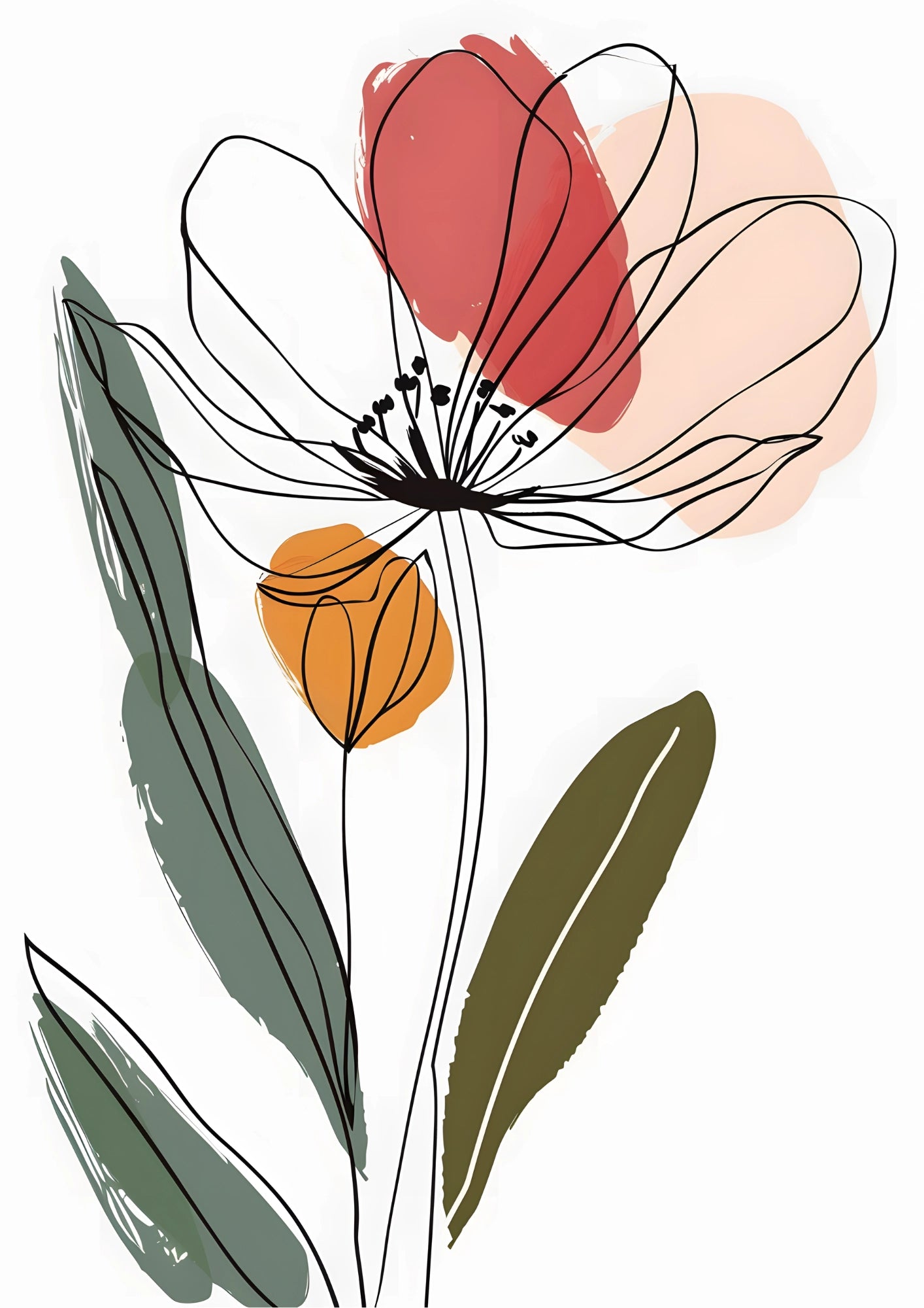 Plakat "Kolorowa Abstrakcja Kwiatów" łączy minimalistyczne linie z wyrazistymi plamami kolorów, tworząc kompozycję, która wprowadza lekkość i nowoczesny styl do Twojego wnętrza. Każdy detal jest starannie przemyślany, aby nadać przestrzeni subtelny, ale wyrazisty akcent.Geometryczna Harmonia i Kolor
