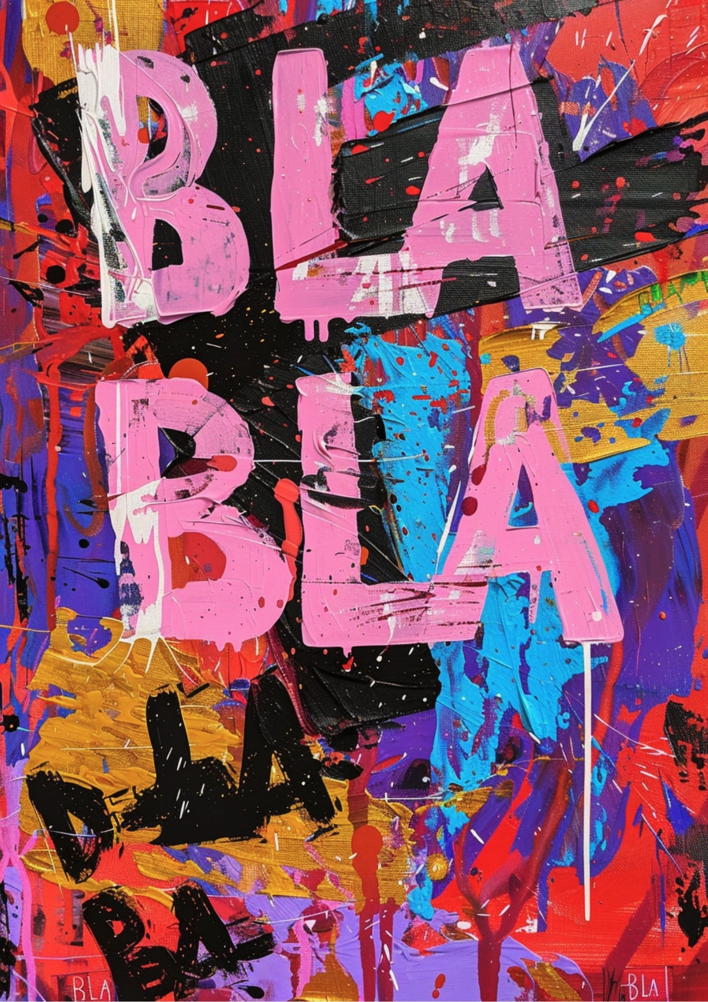 Wyobraź sobie ten plakat na ścianie swojego salonu, sypialni czy biura – jego obecność przekształci każde pomieszczenie w przestrzeń pełną energii i kreatywności. "Kolorowy Ekspresyjny Blabla Plakat" to sposób na wyrażenie swojego unikalnego stylu i wprowadzenie do wnętrza odrobiny artystycznej ekstrawagancji.Zmień Styl Swojego Wnętrza Już Dziś!