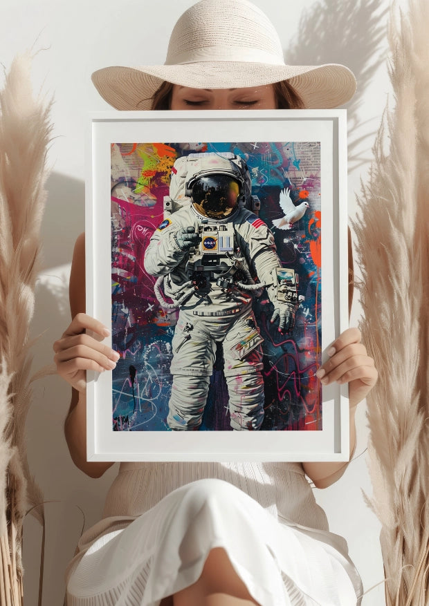 Stworzony z najwyższą precyzją, plakat łączy w sobie dynamiczne graffiti z futurystycznym wizerunkiem astronauty. Każdy szczegół został dopracowany, aby zachwycać – od intensywnych odcieni fioletu, przez energetyczną pomarańcz, po subtelne elementy bieli. Dzięki wysokiej jakości wydruku, każdy element tej kosmicznej kompozycji emanuje życiem, dostarczając niezapomnianych wrażeń estetycznych.Transformuj Swoje Wnętrze