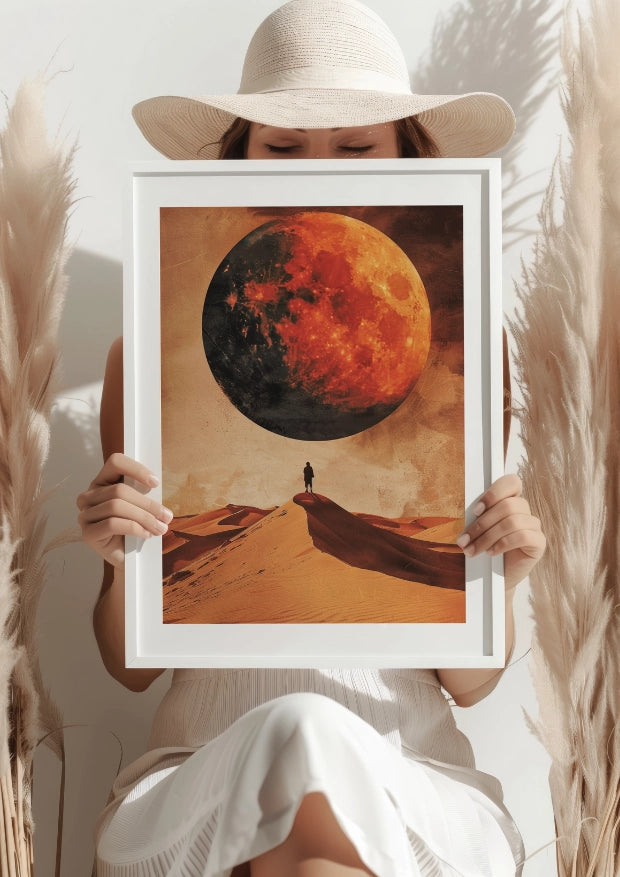 Zanurz się w hipnotyzującym świecie, gdzie księżyc i pustynia spotykają się w niecodziennym tańcu kolorów i emocji. Ten plakat to nie tylko dekoracja – to okno na nieznany krajobraz, który przenosi w odległe zakątki wyobraźni i pozwala odkryć piękno poza codziennością.Podróż Pełna Detali i Koloru